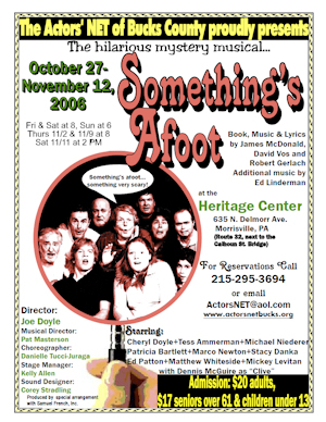 Hilarious mystery musical that spoofs detective stories, mainly the works of Agatha Christie, and especially her detective novel And Then There Were None. Book, music,& Lyrics by James McDonald, David Vos, and Robert Gerlach. Directed by Joe Doyle.