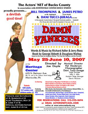 The musical is a modern retelling of the Faust legend set during the 1950s in Washington, D.C., at a time when the New York Yankees dominated Major League Baseball. Book by George Abbott and Douglass Wallop, music and lyrics by Richard Adler and Jerry Ross. Directed by Joe Doyle.