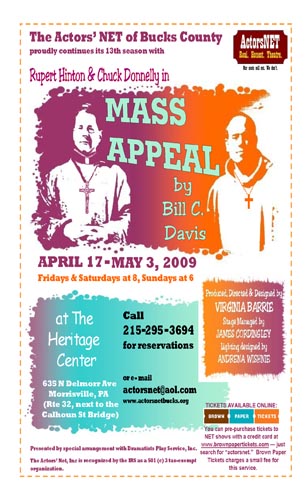 This is a comic and insightful two character play about an old parish priest who takes a rebellious young church deacon under his wing, trying to safely guide the young man to priesthood. They are polar opposites in all but their devotion to their God. The wise old priest uses charm and finesse to win souls, while the young deacon has a blistering "take no prisoners" approach which ruffles feathers. How will this clerical odd couple resolve their differences? God only knows!